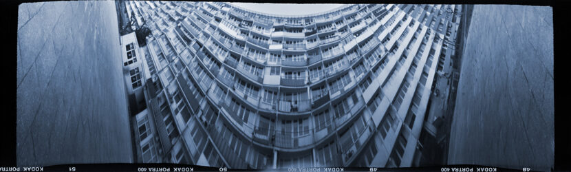 Faloviec in Gdansk at Obroncow Wybrzeza Street is the longest residential building in Poland which was established in the early seventies. It has 11 floors, a roof with an area of 1 ha, 16 staircases and 860 metres in length. To get from the first to the last stairway you have to travel by bus three stops. 1,792 flats are occupied by nearly 6,000 tenants. It’s as many as can make a small town. The shape and the arrangement of the balconies resemble a wave. A specific microclimate has developed around the building: the temperatures on both sides of the building differ by several degrees, and wind tunnels form in the passages underneath it.